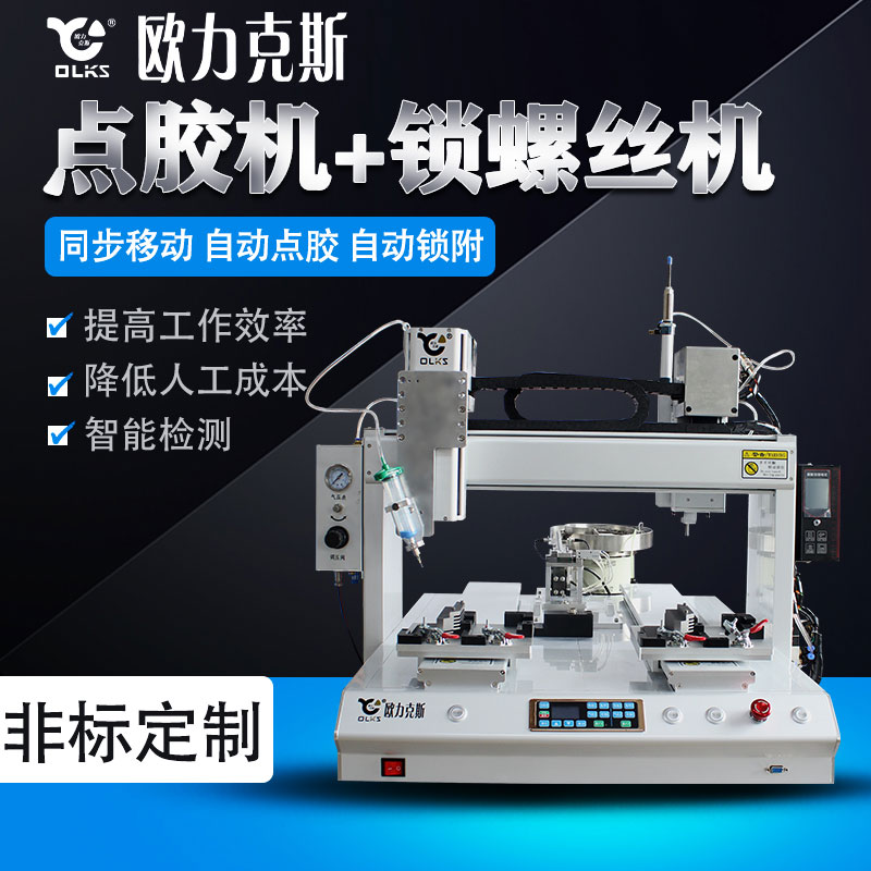 • 產(chǎn)品名稱:背靠背自動點膠鎖螺絲一體機