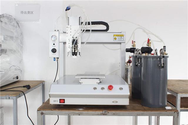 工作原理自動點膠機就是在PCB板上面需求貼片的位置預先點上一種特殊的膠,來固定貼片元件,固化后再經(jīng)過波峰焊。點膠是依據(jù)程序自動停止的。1.管狀旋轉(zhuǎn)出膠控制;普通、數(shù)字式時間控制器。2.點膠筆頭設(shè)置微動點觸開關(guān),操作便當;不需空氣壓力,接電源即可工作。